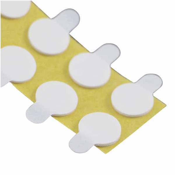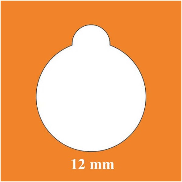 Diámetro 12 mm y espesor 1 mm. Con cubierta de papel protector y con pestaña para fácil colocación.