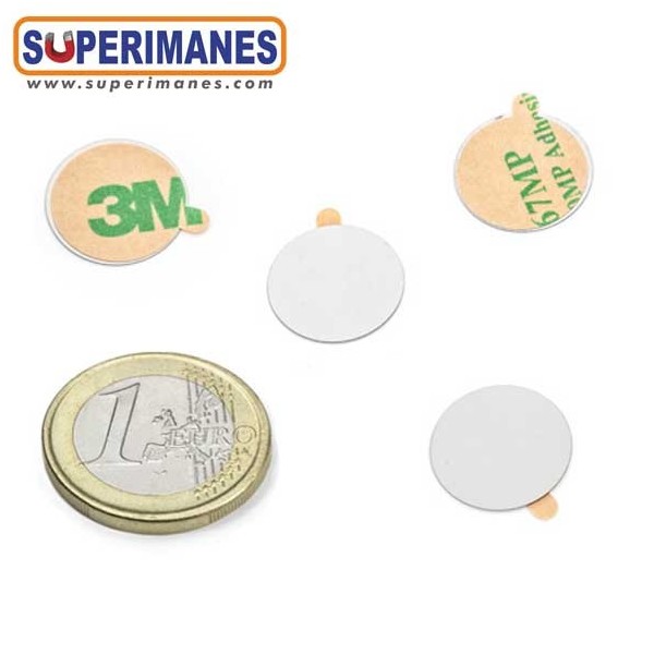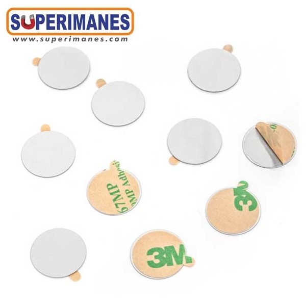 En cada set recibirá 10 discos de 15mm x 0,4 mm espesor, de diámetro en acero inoxidable con reverso autoadhesivo para su pegado en cualquier sitio.