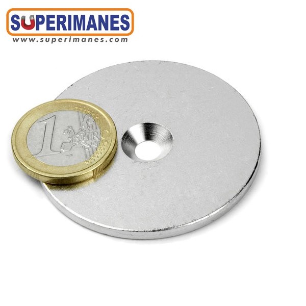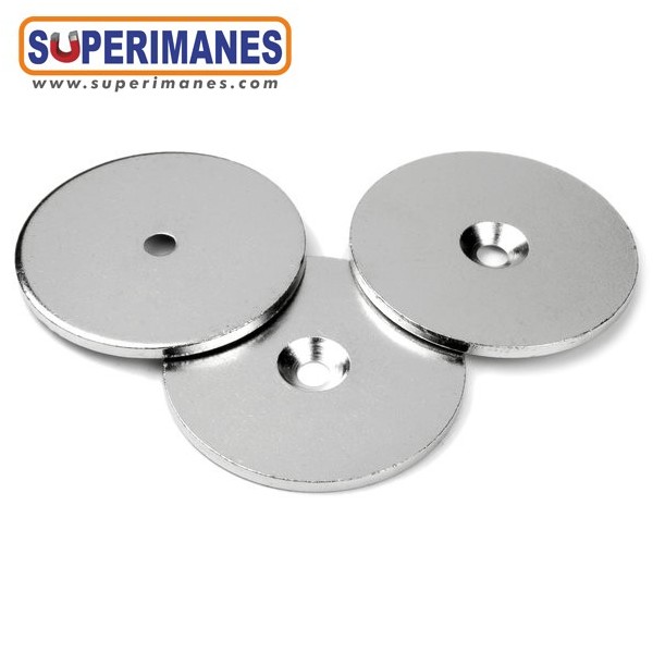 Imanes con taladro avellanado, niquelados, 80ºC.