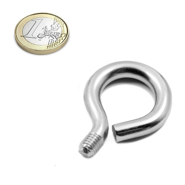 Gancho cerrado metálico en acero niquelado con rosca M8.