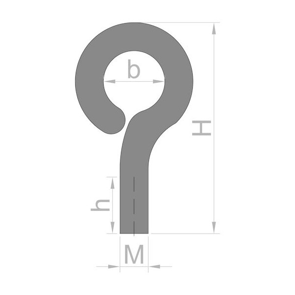 Hembrillas redondas con altura 56 mm y rosca métrica 8 mm. Anilla con diámetro interior de 23 mm, largo rosca 9 mm. Peso 40 g/uds.