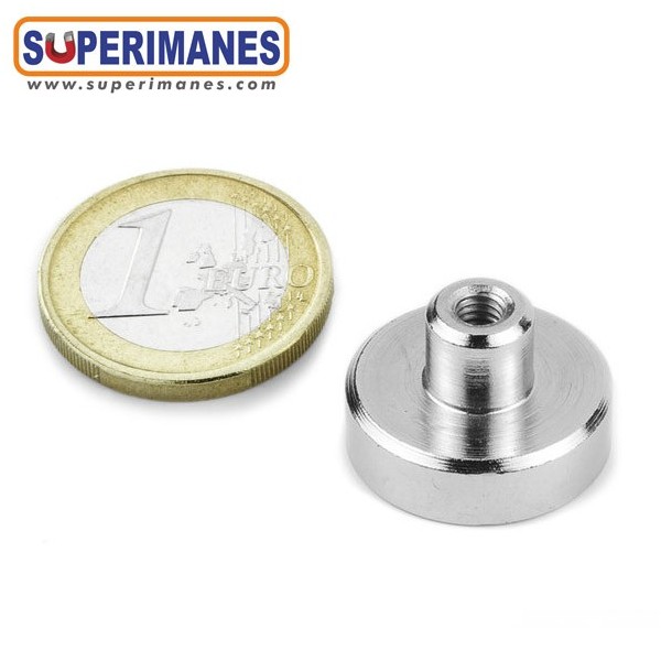 Imán en recipiente con casquillo roscado, Ø 20mm