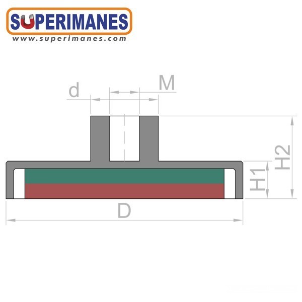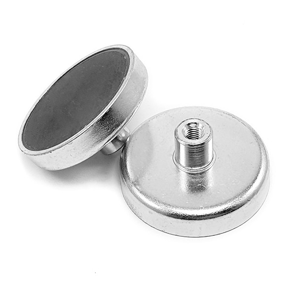 Los imanes en recipiente con casquillo roscado llevan en una cara un casquillo donde puede enroscar ganchos, hembrillas, tornillería, etc.