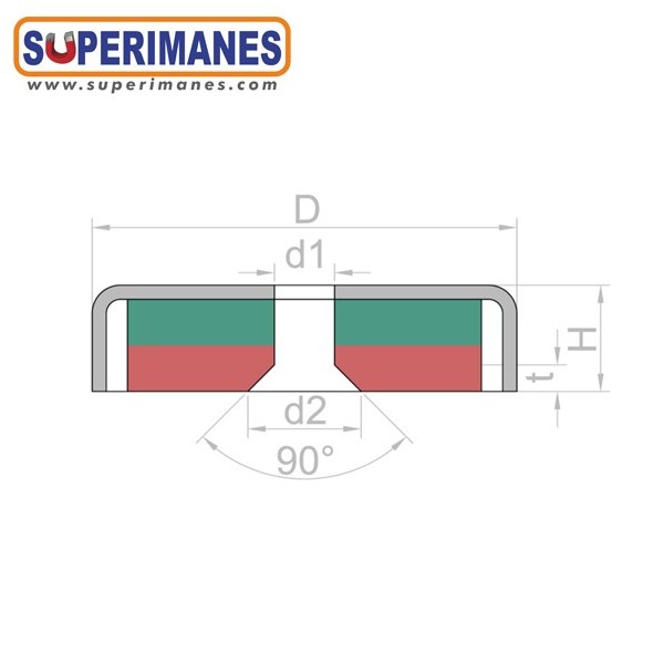 Estos imanes de neodimio están introducidos en un recipiente de acero. Cuando está en contacto directo con una superficie gruesa de hierro dicho recipiente de acero aumenta la fuerza de sujeción del imán. La fuerza ejercida puede ser menor si no hay contacto directo con la pieza contraria o si la chapa de hierro es delgada, tosca o está pintada.