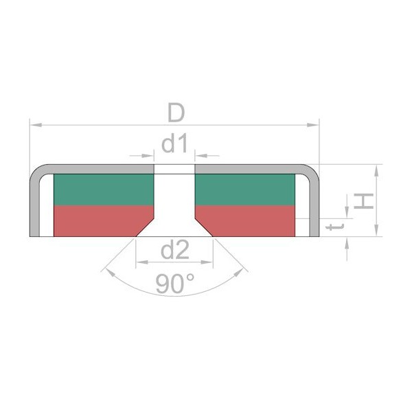Los imanes de ferrita en recipiente avellanados se pueden fijar con un tornillo de cabeza avellanada. Este imán equivale a nuestro modelo IRA pero en ferrita. Los imanes de ferrita tienen menos fuerza de sujeción que los imanes de neodimio. Estos imanes de ferrita son más económicos que los IRA de neodimio.
