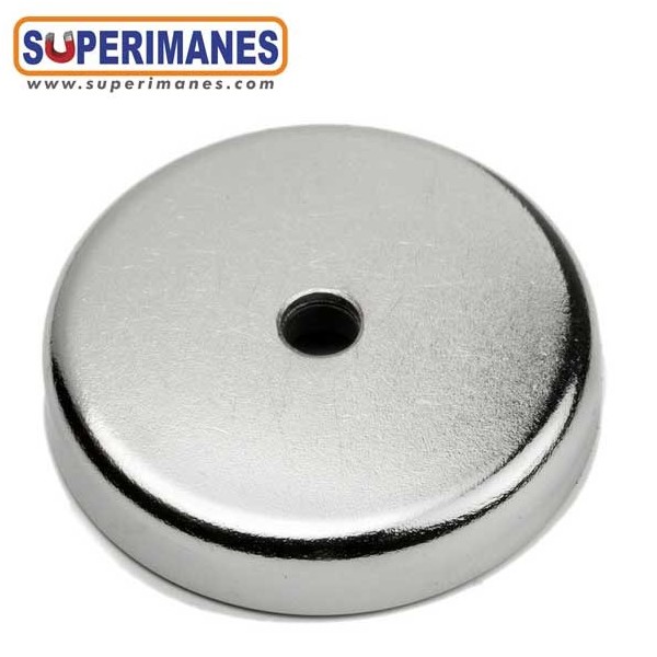 Estos imanes de neodimio están introducidos en un recipiente de acero. Cuando está en contacto directo con una superficie gruesa de hierro dicho recipiente de acero aumenta la fuerza de sujeción del imán. La fuerza ejercida puede ser menor si no hay contacto directo con la pieza contraria o si la chapa de hierro es delgada, tosca o está pintada.