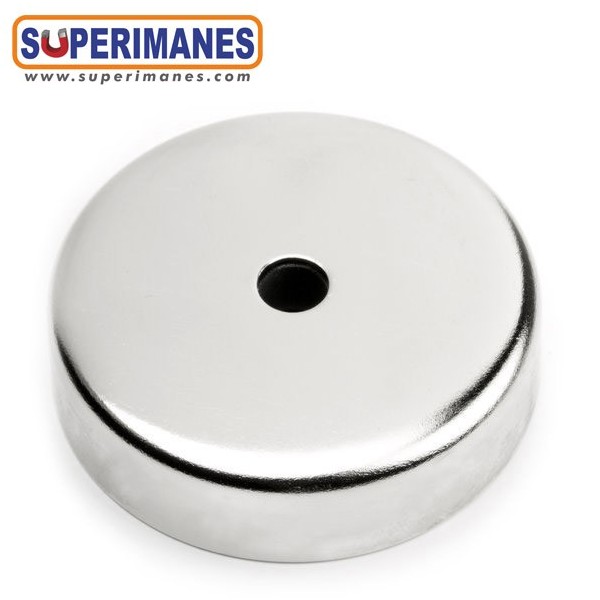 Estos imanes de neodimio están introducidos en un recipiente de acero. Cuando está en contacto directo con una superficie gruesa de hierro dicho recipiente de acero aumenta la fuerza de sujeción del imán. La fuerza ejercida puede ser menor si no hay contacto directo con la pieza contraria o si la chapa de hierro es delgada, tosca o está pintada.