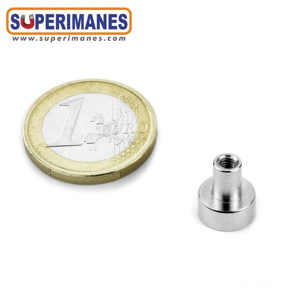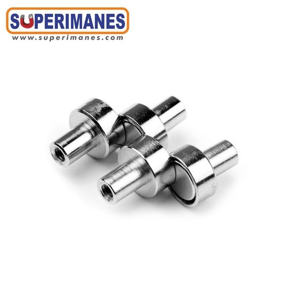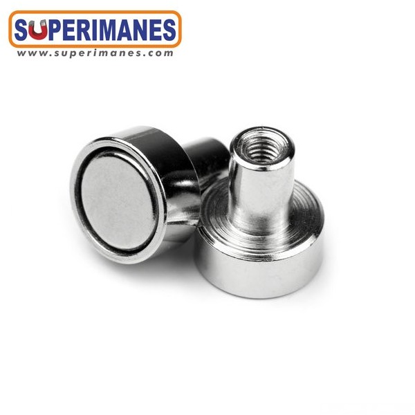 Los imanes en recipiente con casquillo roscado son idóneos para enroscar en ellos ganchos, anillas, hembrillas, tornillería, etc.