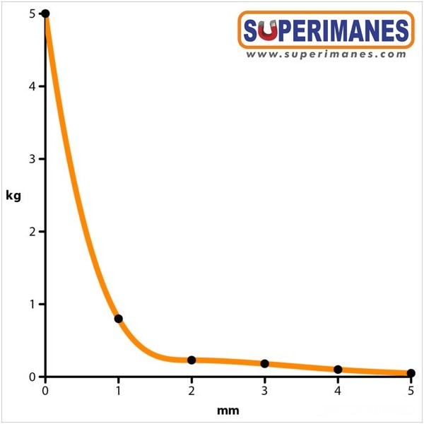 Estos imanes de neodimio están introducidos en un recipiente de acero. Cuando está en contacto directo con una superficie gruesa de hierro dicho recipiente de acero aumenta la fuerza de sujeción del imán. La fuerza ejercida puede ser menor si no hay contacto directo con la pieza contraria o si la chapa de hierro es delgada, tosca o está pintada. La fuerza de sujeción de estos imanes está medida en perpendicular a la base adhesiva. Esto significa que dicha fuerza es más real si está fijado en un techo, pues la fuerza ejercida en una pared es mucho menor.