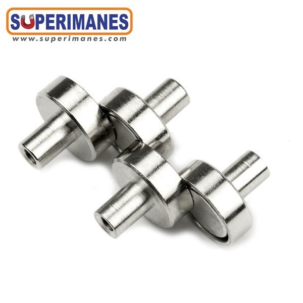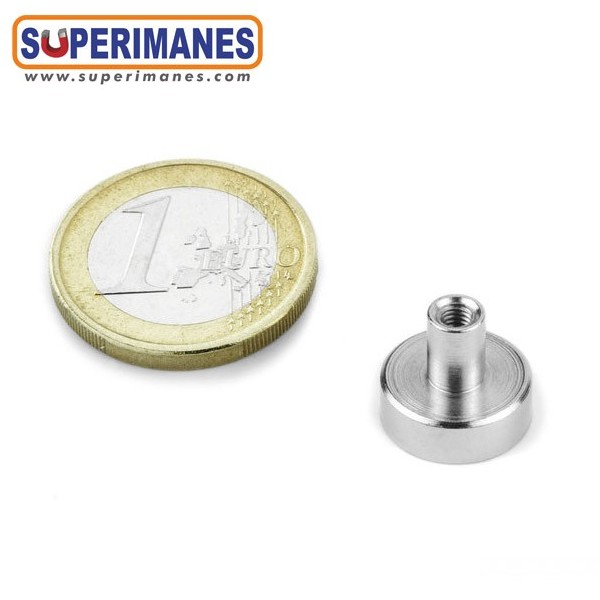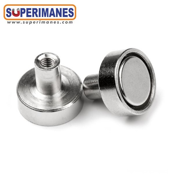 Los imanes en recipiente con casquillo roscado son idóneos para enroscar en ellos ganchos, anillas, hembrillas, tornillería, etc.