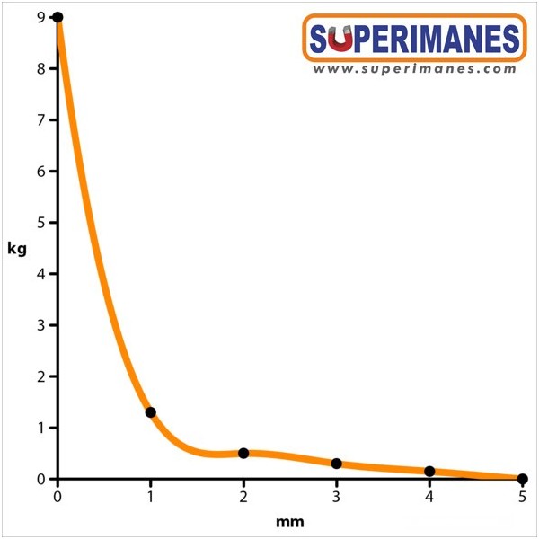 Estos imanes de neodimio están introducidos en un recipiente de acero. Cuando está en contacto directo con una superficie gruesa de hierro dicho recipiente de acero aumenta la fuerza de sujeción del imán. La fuerza ejercida puede ser menor si no hay contacto directo con la pieza contraria o si la chapa de hierro es delgada, tosca o está pintada.