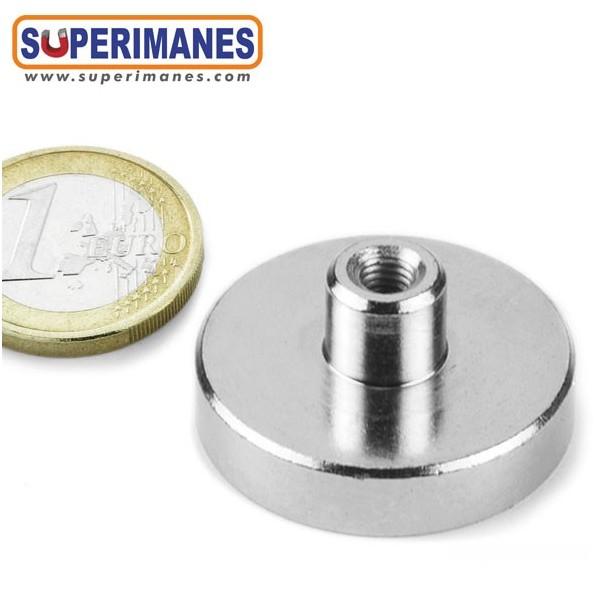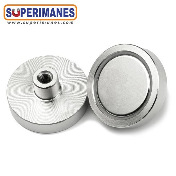 Los imanes en recipiente con casquillo roscado son idoneos para enroscar en ellos ganchos, anillas, hembrillas, tornillería, etc.