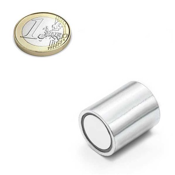 Imán de neodimio en forma de cilindro con base magnética con revestimiento liso, sin taladros, para pegar y embutir. Esta base magnética cilíndrica tiene un diámetro de 20 mm y altura de 25 mm. Cilindro de acero e interior magnético de neodimio. Base magnética con fuerza de sujeción de 13 kg (aprox. 127 N). Temperatura máxima de servicio de 80º C. La pieza tiene un peso de 61 gramos.