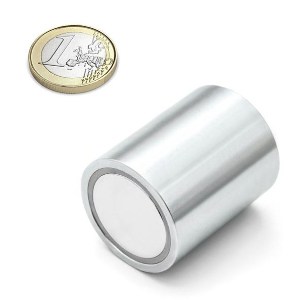 Imán de neodimio en forma de cilindro con base magnética con revestimiento liso, sin taladros. Esta base magnética cilíndrica tiene un diámetro de 32 mm y altura de 40 mm. Cilindro de acero e interior magnético de neodimio. Base magnética con fuerza de sujeción de 34 kg. Temperatura máxima de servicio de 80º C. La pieza tiene un peso de 250 gramos.