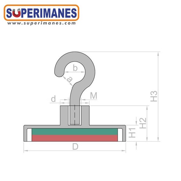 Particularidad: Estos imanes con gancho son ideales para colgar objetos. El gancho se puede desenroscar. Con estos potentes ganchos magnéticos, se puede colgar cómodamente material de oficina, utensilios de cocina, prendas de ropa, etc., en superficies ferromagnéticas. Los ganchos magnéticos despliegan su fuerza de sujeción máxima en la parte inferior de vigas de acero gruesas, en las que se les puede aplicar una carga hacia abajo en vertical. Sin embargo, si se colocan en una pared, la carga que se les puede aplicar es considerablemente menor.