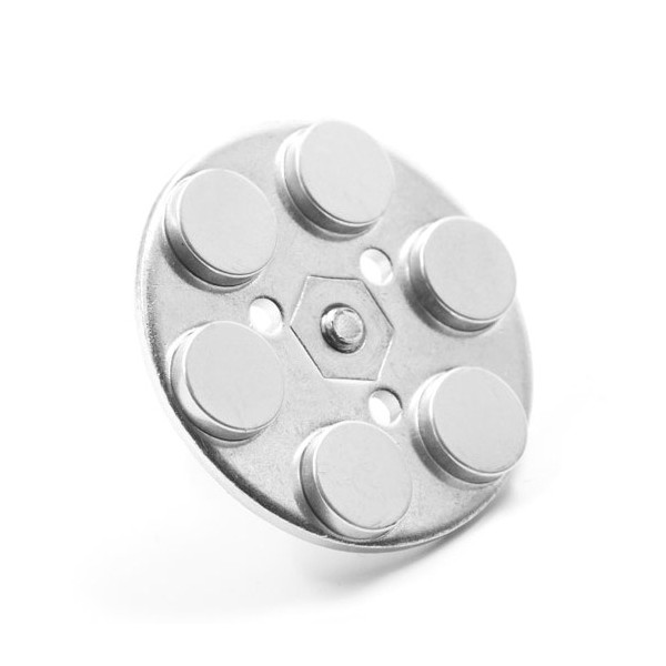Principio: Los sistemas magnéticos constan de múltiples imanes (a veces solo uno en sistemas pequeños) colocados sobre una placa de acero. A diferencia de los imanes en recipiente, son más delgados y permiten un uso más discreto.