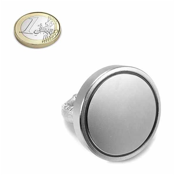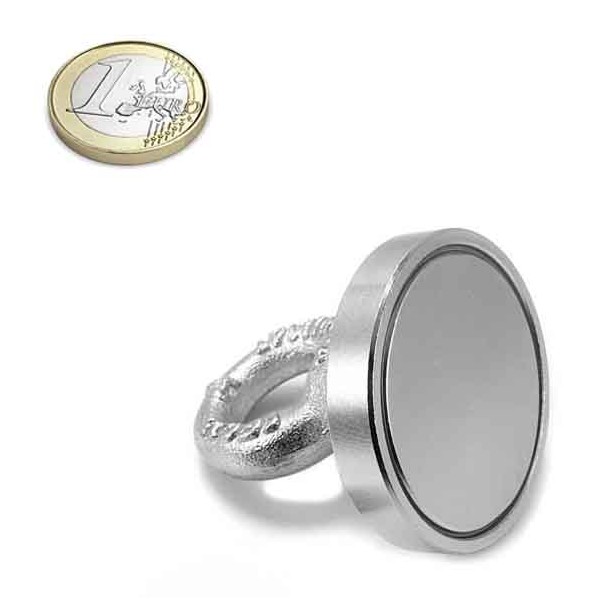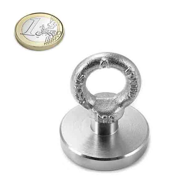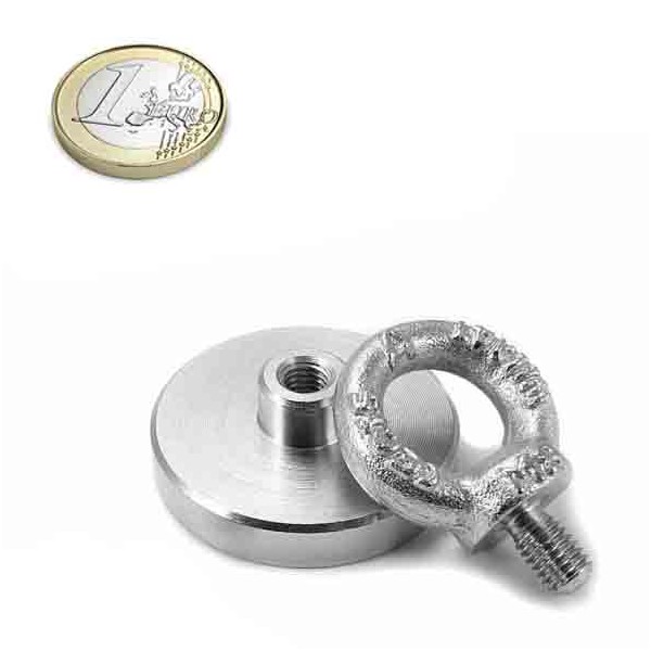 Estos imanes con hembrilla son ideales para colgar objetos. La hembrilla al estar cerrada no permite que se salga el objeto o cuerda colocado. En estos imanes la hembrilla se puede desenroscar, llegando a poderse quitar completamente de la base. Este imán también es usado para realizar recuperación de objetos, pesca magnética, búsqueda en pozos, busca tesoros, sacar objetos del agua, imán recuperación de objetos metálicos.