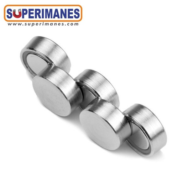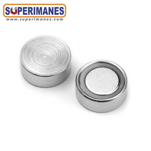 Estos imanes en recipientes circulares y planos son ideales para sitios donde no puedes atornillar sino pegarlos. Puede usarlo dentro de cavidades.