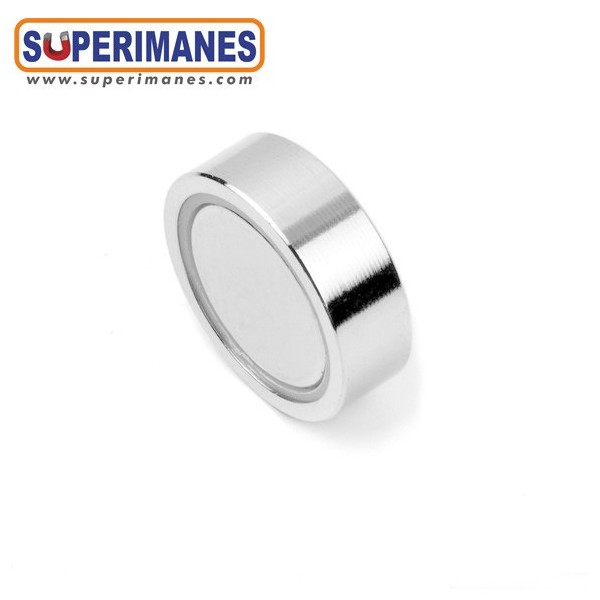 Estos imanes de neodimio están introducidos en un recipiente de acero. Cuando está en contacto directo con una superficie gruesa de hierro dicho recipiente de acero aumenta la fuerza de sujeción del imán. La fuerza ejercida puede ser menor si no hay contacto directo con la pieza contraria o si la chapa de hierro es delgada, tosca o está pintada.