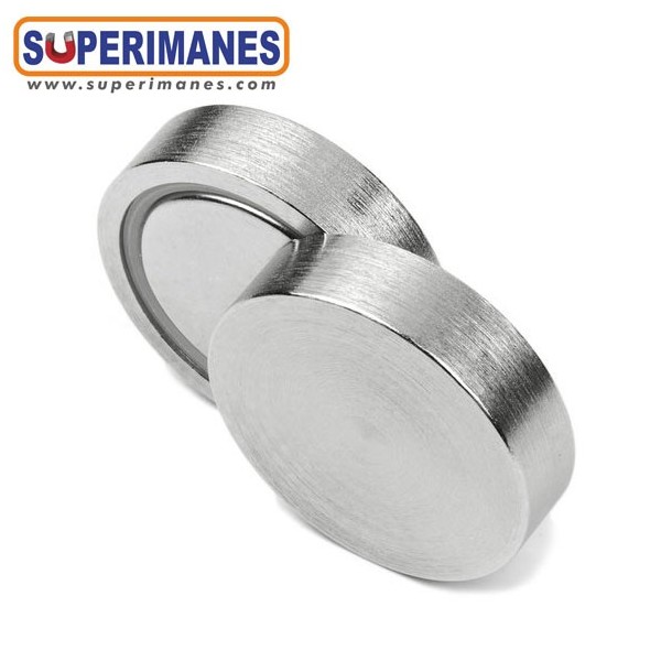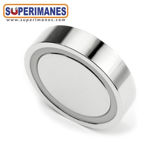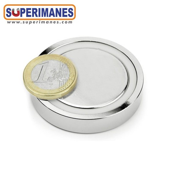 Estos imanes de neodimio están introducidos en un recipiente de acero. Cuando está en contacto directo con una superficie gruesa de hierro dicho recipiente de acero aumenta la fuerza de sujeción del imán. La fuerza ejercida puede ser menor si no hay contacto directo con la pieza contraria o si la chapa de hierro es delgada, tosca o está pintada.