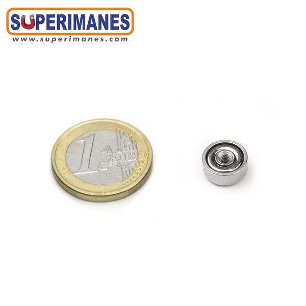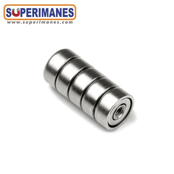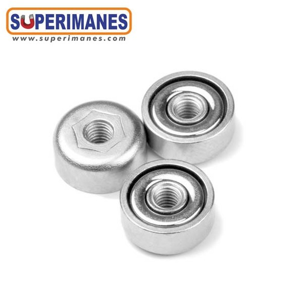 Los imanes en recipiente con rosca interior llevan una rosca con métrica para poder fijar a objetos que tengan rosca exterior.