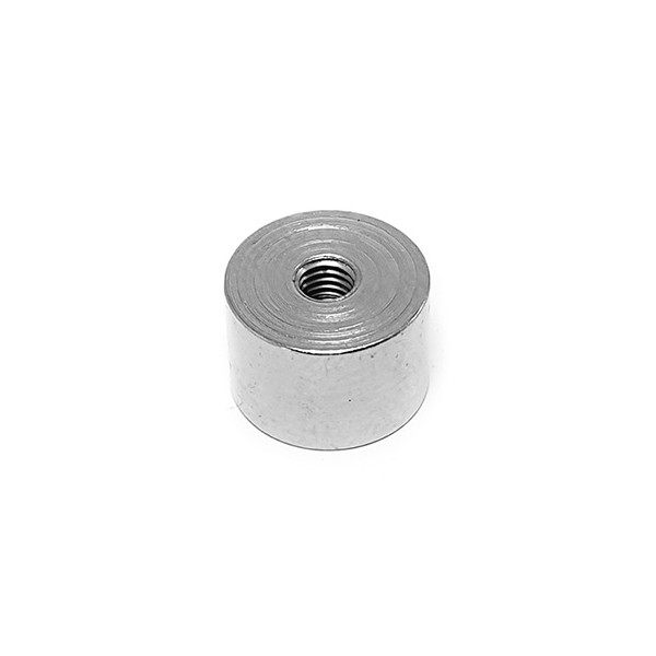 Imán de neodimio en forma de disco con rosca interior pasante. Esta base magnética de disco tiene un diámetro de 10mm y altura de 7mm y lleva una rosca interior hembra M3 con taladro pasante por el otro lado. Cilindro de acero e interior magnético de neodimio. Revestimiento niquelado. Base magnética con fuerza de sujeción de 1,8 kg. aproximadamente. Magnetización N35 axial con cara visible del imán polo norte. Temperatura máxima de servicio de 80º C. La pieza tiene un peso de 2,5 gramos.