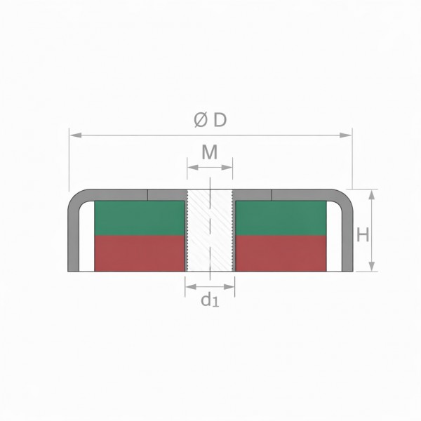Las bases magnéticas cilíndricas, al estar revestidas en un recipiente metálico, concentran el campo magnético en su base, proporcionando una gran potencia en la superficie de contacto. Es importante tener en cuenta que, si no hay contacto directo con la superficie férrica, la fuerza de sujeción puede disminuir más que en imanes sin este tipo de base o recipiente metálico.