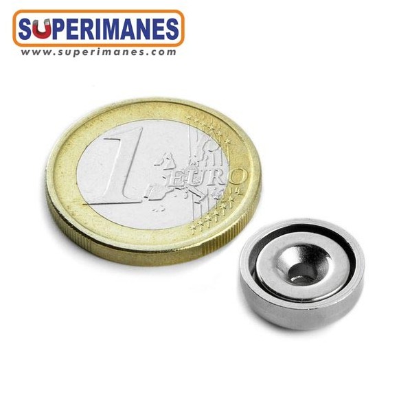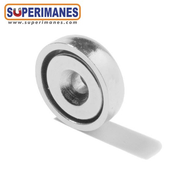 Particularidad: Estos imanes en recipiente se pueden fijar con un tornillo de cabeza avellanada. También ofrecemos Bases magnéticas con taladro cilíndrico.
