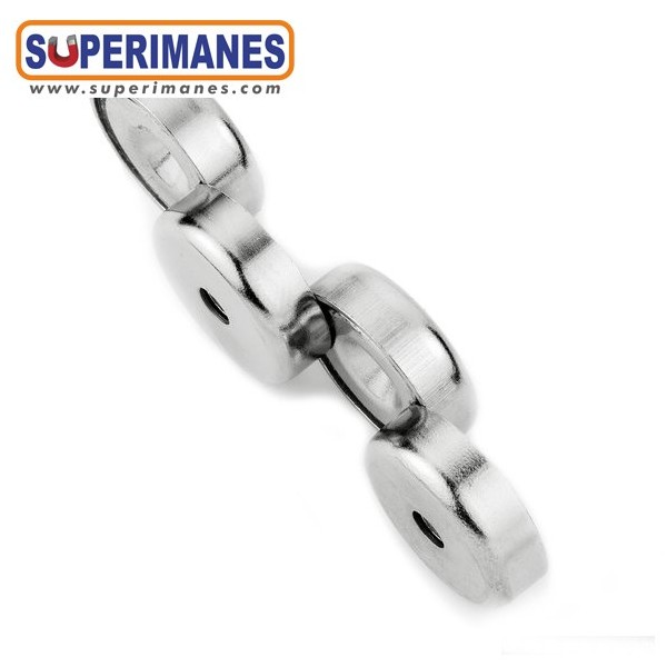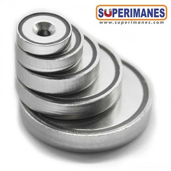Particularidad: Estos imanes en recipiente se pueden fijar con un tornillo de cabeza avellanada. También ofrecemos Bases magnéticas con taladro cilíndrico.