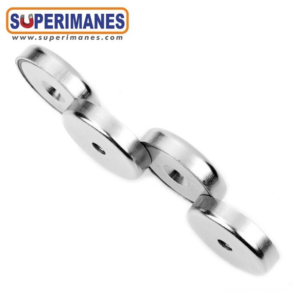 Particularidad: Estos imanes en recipiente se pueden fijar con un tornillo de cabeza avellanada. También ofrecemos Bases magnéticas con taladro cilíndrico.