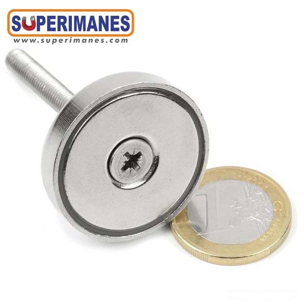 Particularidad: Estos imanes en recipiente se pueden fijar con un tornillo de cabeza avellanada. También ofrecemos Bases magnéticas con taladro cilíndrico.