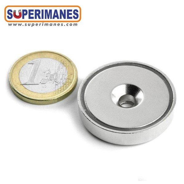 ¡Es un imán en recipiente metálico! Para atornillar. Un imán muy práctico. Disco magnético con una fuerza de sujeción de 30 kg. Muy útil para un sujetar o levantar objetos gruesos, usado en cierres, experimentos, magia, juegos, motores, generador corriente eléctrica, turbinas eólicas, automoción, limpieza magnética, separación magnética, etc. Con aplicaciones en laboratorios, universidades, hogares, oficinas y cualquier otro lugar donde llegue su imaginación.