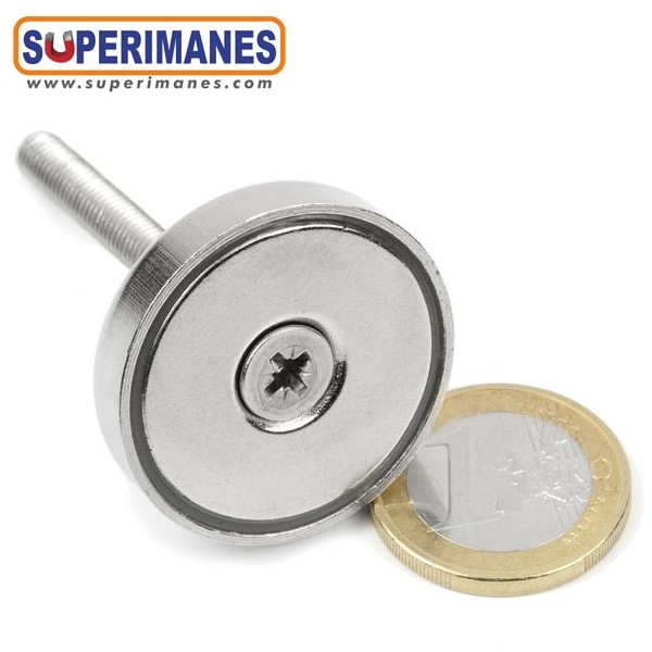 ¡Es un imán en recipiente metálico! Para atornillar. Un imán muy práctico. Disco magnético con una fuerza de sujeción de casi 30 kg. Muy útil para un sujetar o levantar objetos gruesos, usado en cierres, experimentos, magia, juegos, motores, generador corriente eléctrica, turbinas eólicas, automoción, limpieza magnética, separación magnética, etc. Con aplicaciones en laboratorios, universidades, hogares, oficinas y cualquier otro lugar donde llegue su imaginación.