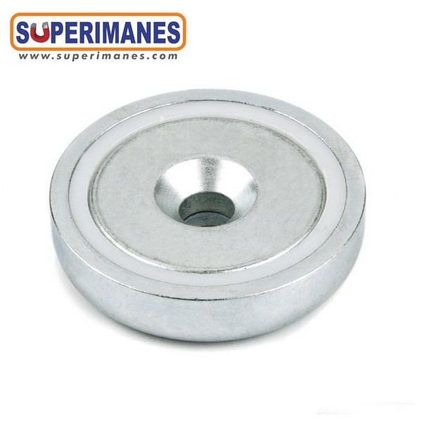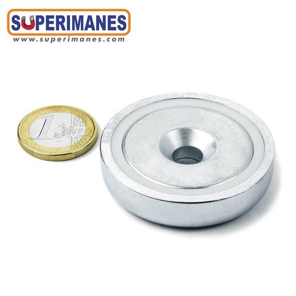Particularidad: Estos imanes en recipiente se pueden fijar con un tornillo de cabeza avellanada. También ofrecemos Bases magnéticas con taladro cilíndrico.