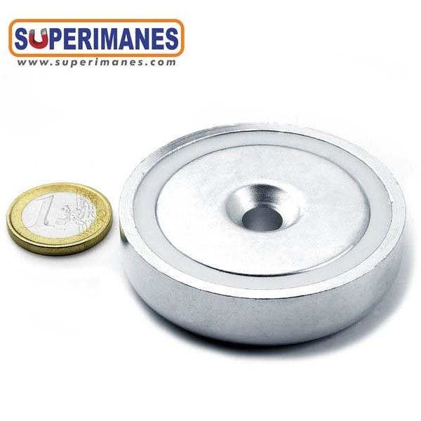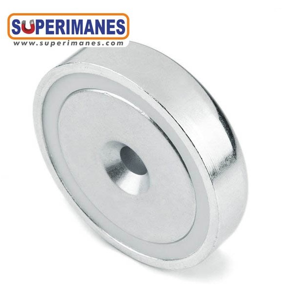 Particularidad: Estos imanes en recipiente se pueden fijar con un tornillo de cabeza avellanada. También ofrecemos Bases magnéticas con taladro cilíndrico.