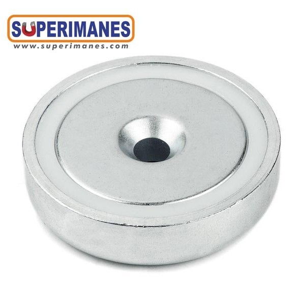 Particularidad: Estos imanes en recipiente se pueden fijar con un tornillo de cabeza avellanada. También ofrecemos Bases magnéticas con taladro cilíndrico.