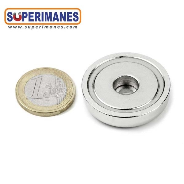 ¡Es un imán en recipiente metálico! Para atornillar sin avellanado. Un imán muy práctico. Disco magnético con una fuerza de sujeción de 23 kg. Muy útil para un sujetar o levantar objetos gruesos, usado en cierres, experimentos, magia, juegos, motores, generador corriente eléctrica, turbinas eólicas, automoción, limpieza magnética, separación magnética, etc. Con aplicaciones en laboratorios, universidades, hogares, oficinas y cualquier otro lugar donde llegue su imaginación.