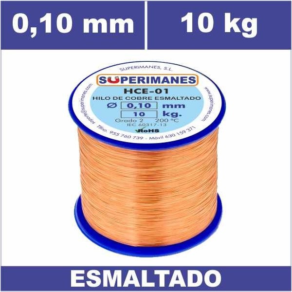 Alambres de cobre esmaltados en 0.10 mm carrete 10 kilos aproximadamente. Clase 200º Grado 2. Rollos de hilos de cobre de gran calidad. También disponibles en otros carretes. Consultar estos cables de cobre para otros pesos.