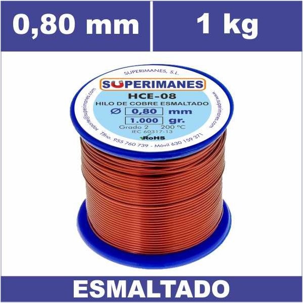 Alambres de cobre esmaltados en 0.80 mm carrete 1 kilogramos. Clase 200º Grado 2. Rollos de hilos de cobre de gran calidad. También disponibles en otros carretes. Consultar estos cables de cobre para otros pesos.