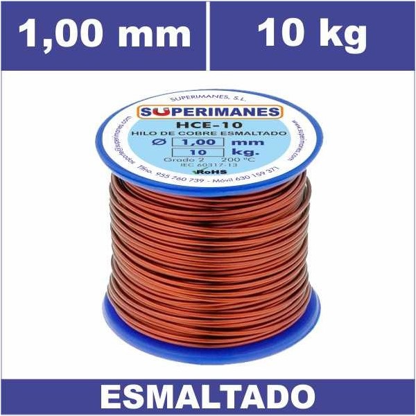 Alambres de cobre esmaltados en 1.00 mm carrete 10 kilogramos. Clase 200º Grado 2. Rollos de hilos de cobre de gran calidad. También disponibles en otros carretes. Consultar estos cables de cobre para otros pesos.