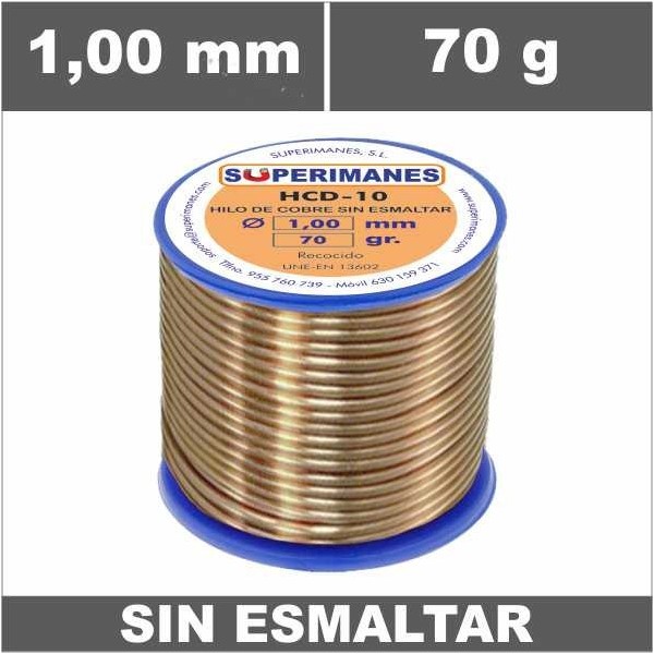 Alambres de cobre sin esmaltar en espesor 1.00 mm carrete de 100 gramos de peso. Consultar estos cables de cobre para otros pesos. Rollos de hilos de cobre desnudo de gran calidad.