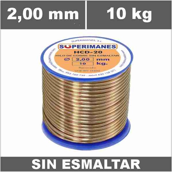 Alambres de cobre sin esmaltar en espesor 2 mm carrete de 10 kilogramos de peso. Consultar estos cables de cobre para otros pesos. Rollos de hilos de cobre desnudo de gran calidad.