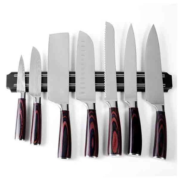 La opción más segura para la cocina profesional y del hogar. Organice sus cuchillos de acero inoxidable con el sistema antideslizante de imanes. Ahorrará espacio y siempre podrá elegir la herramienta apropiada, evitando el desorden en los cajones de la cocina. Fácil de instalar.