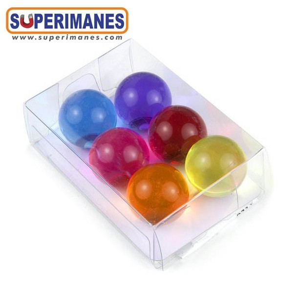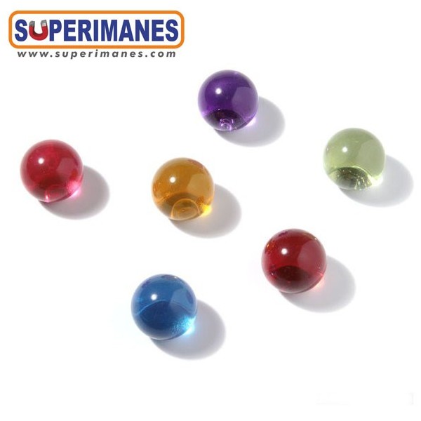 Son esferas de cristal acrílico, llevan insertado en su interior un imán de disco en neodimio para su fuerte sujeción.