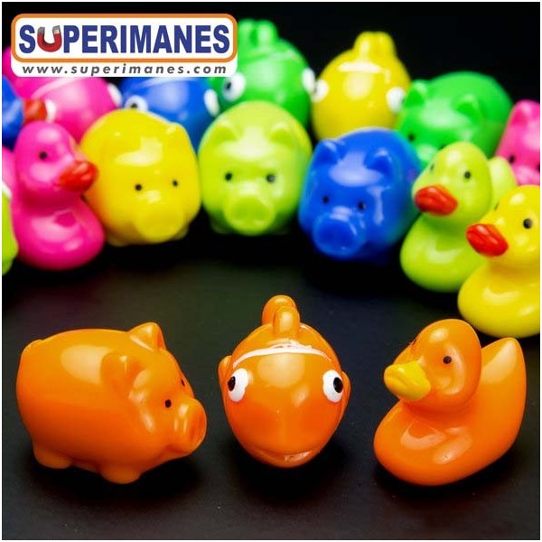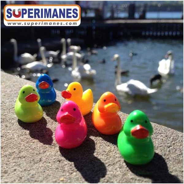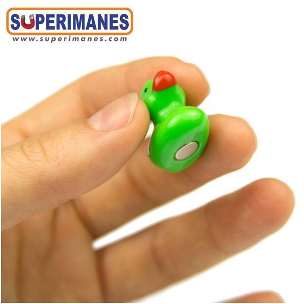 Dado que el imán de Superimanes va introducido (y no pegado) en la figura de resina sintética, hasta que no se mira la base del patito no se puede saber que se trata de un imán decorativo.