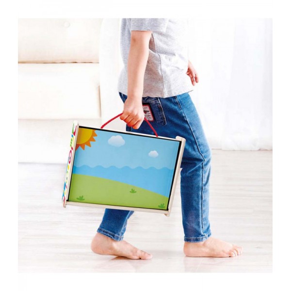 Caja artística para crear formas según las tarjetas incluidas. Tabla magnética donde colocar los imanes formando los dibujos que indique las tarjetas. Los niños podrán realizar multiples formas y dibujos con la caja.