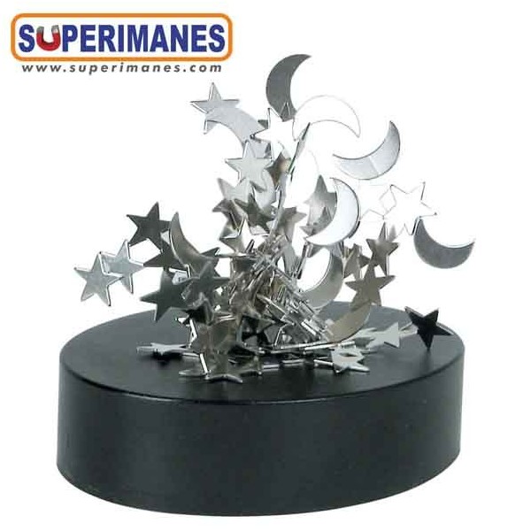 Esta pieza es muy decorativa y a la vez original. La escultura magnética la tenemos en tres modelos a elegir. Con esferas, estrellas-luna, tuercas.