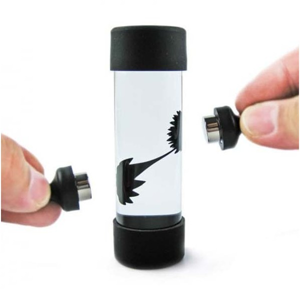 Este accesorio con ferrofluido líquido magnético en un bote de cristal transparente cilíndrico donde puede ver a través del cristal las formas que puede realizar el ferrofluido a acercarse a imanes. Es un artículo muy interesante. Esta pieza es muy decorativa y a la vez original. El ferrofluid magnetic display lo tenemos en dos modelos, uno en bote cuadrado y otro en bote cilíndrico.