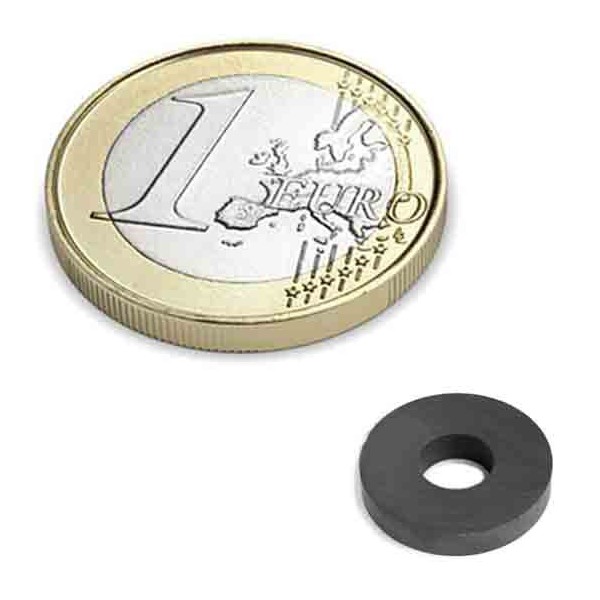 Este aro de ferrita tienen un diámetro exterior de 10 mm, diámetro interior de 4 mm y altura 3 mm. Tienen fuerza de sujeción de 190 gramos aproximadamente. Anillo magnético ferrita, sin revestimiento. Temperatura máxima de servicio de 250º C. La pieza tiene un peso de 1 gramos.