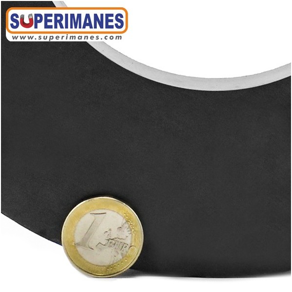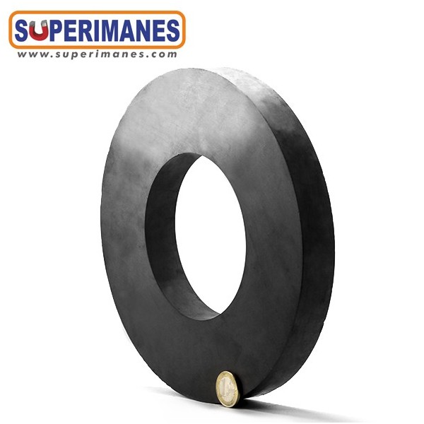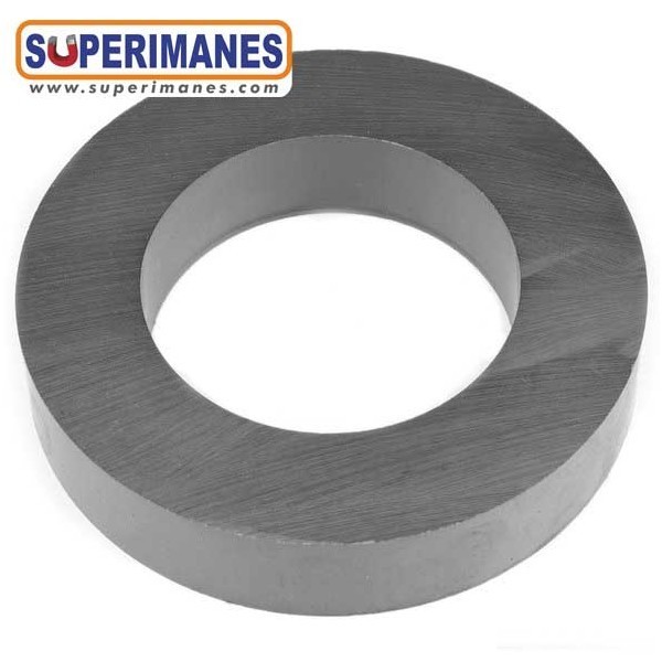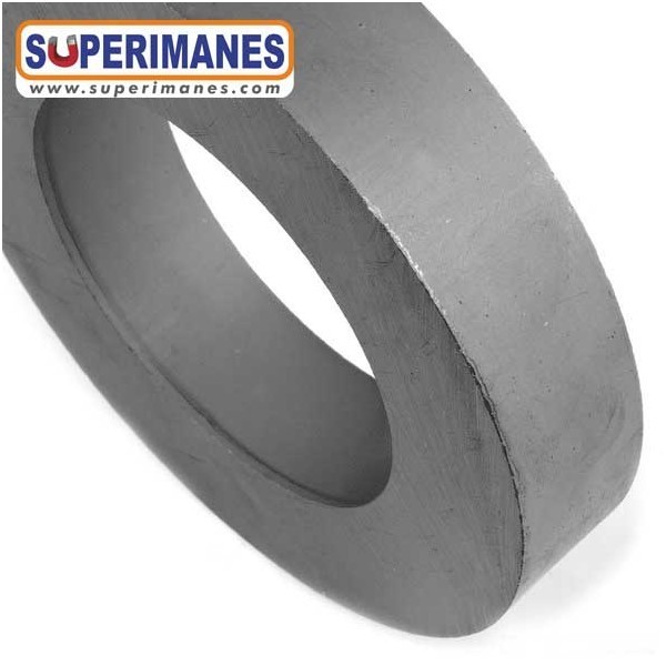 Este aro de ferrita tienen un diámetro exterior de 220 mm, diámetro interior de 110 mm y altura 25 mm. Tienen fuerza de sujeción de 35 kilogramos aproximadamente. Anillo magnético ferrita, sin revestimiento. Temperatura máxima de servicio de 250º C. La pieza tiene un peso de 3,60 kilogramos.